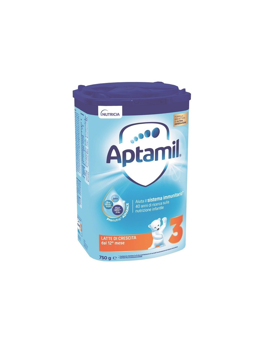 Il latte materno è l'alimento ideale per il lattante ed è raccomandato comealimento esclusivo fino al 6° mese e come componente lattea di una dieta equilibratadurante lo svezzamento e anche dopo l'anno di vita. Il latte di crescita Aptamil 3è da intendersi all'interno di una dieta varia ed equilibrata e uno stile di vitasano, seguendo le indicazioni del pediatra.