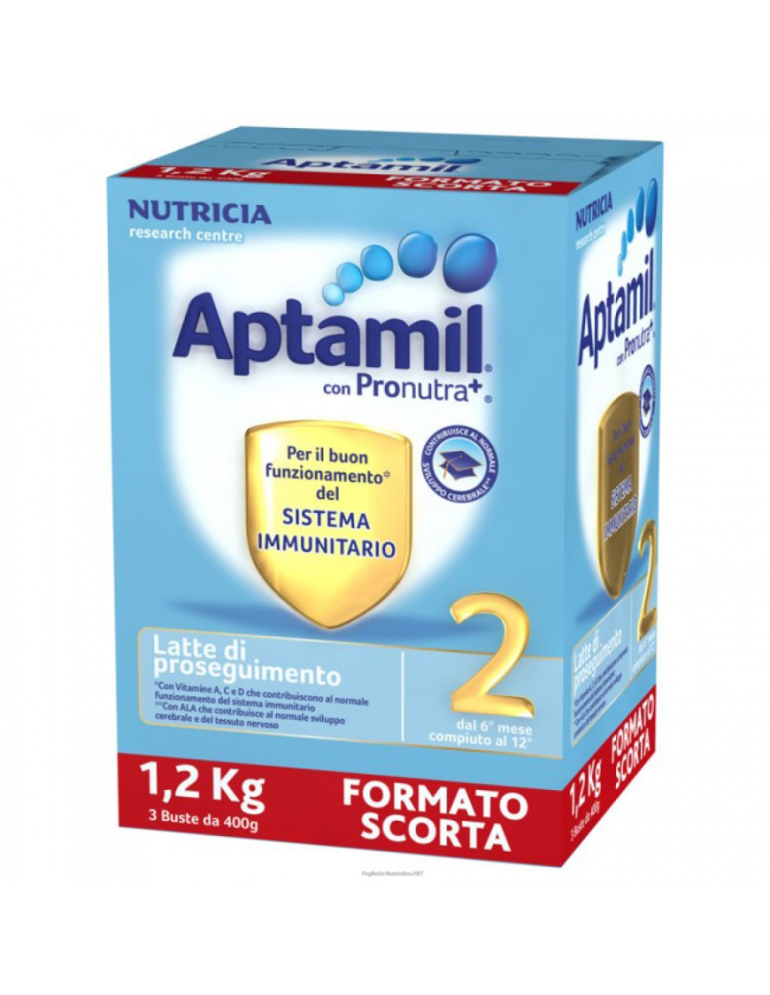 La formula è arricchita dalle vitamine A, C e D che contribuiscono al normalefunzionamento del sistema immunitario, olio di pesce e GOS/FOS. Aptamil 2 include ALA,per favorire il normale sviluppo cerebrale e del tessuto nervoso.