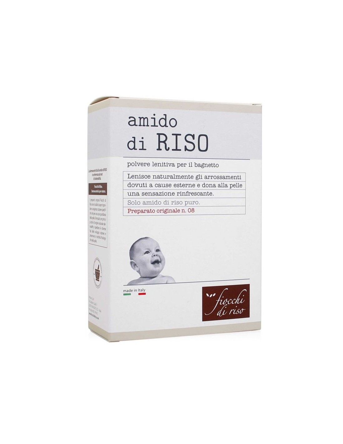 Amido di Riso (Oryza Sativa Starch): detergente lenitivo e rinfrescante, aiuta arisolvere gli arrossamenti e le irritazioni da pannolino di neonati e bambini, donandoloro sollievo e una piacevole sensazione di freschezza.